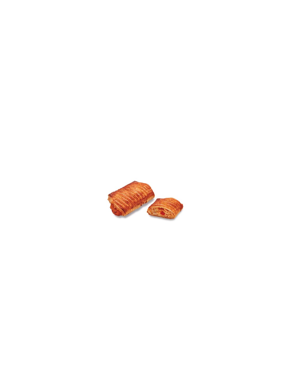 Ingredients: farina de TRITIC, margarina vegetal (greix vegetal (palma), xarop de glucosa i fructosa, olis vegetals (girasol, SOIA), aigua, emulsionants (E322, E471), aromes naturals, acidificant (E330), colorant (E160a)), aigua, sal, gluten de TRIGUER, agent de tractament (E300). Farça 46%: ratatolha (ceba, pebrot vermell, puré de tomàquet, pebrot verd, oli d'oliva, sucre, midó modificat, sal, E410, E417, E330, E202), preparació de proteïna de SOIA vegana (aigua, proteïna de SOIA, olis (de colza, de coco), aromes, vinagre, sal, llorer, proteïna vegetal (de pèsol), colorant (E160d)), oli de gira-sol, farina de TRIGUER, aigua, llevat, sal. Cobertura 1%: aigua, xarop de sucre invertit, proteïnes vegetals (pèsol, patata, arròs), dextrosa, maltodextrina, midó.