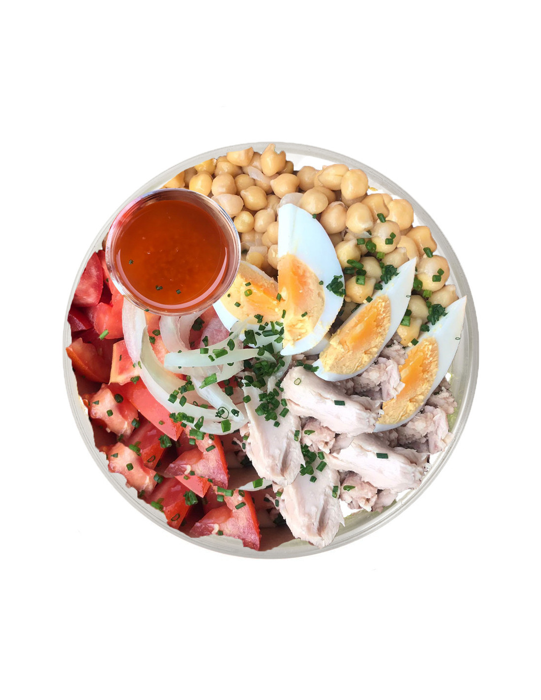 Aquesta és una amanida freda i saludable per gaudir d’un plat molt complet. Els ingredients bàsics que no fallen: cigrons, ou, tonyina, ceba en vinagre i tomàquet.