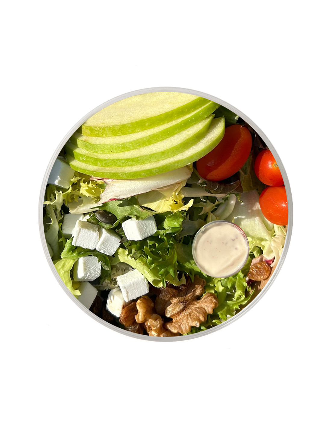 This salad is super complete with green leaves, apple, walnuts and the classic and protagonist goat cheese. Undoubtedly an explosion of flavor perfect to eat in your day to day at the office.