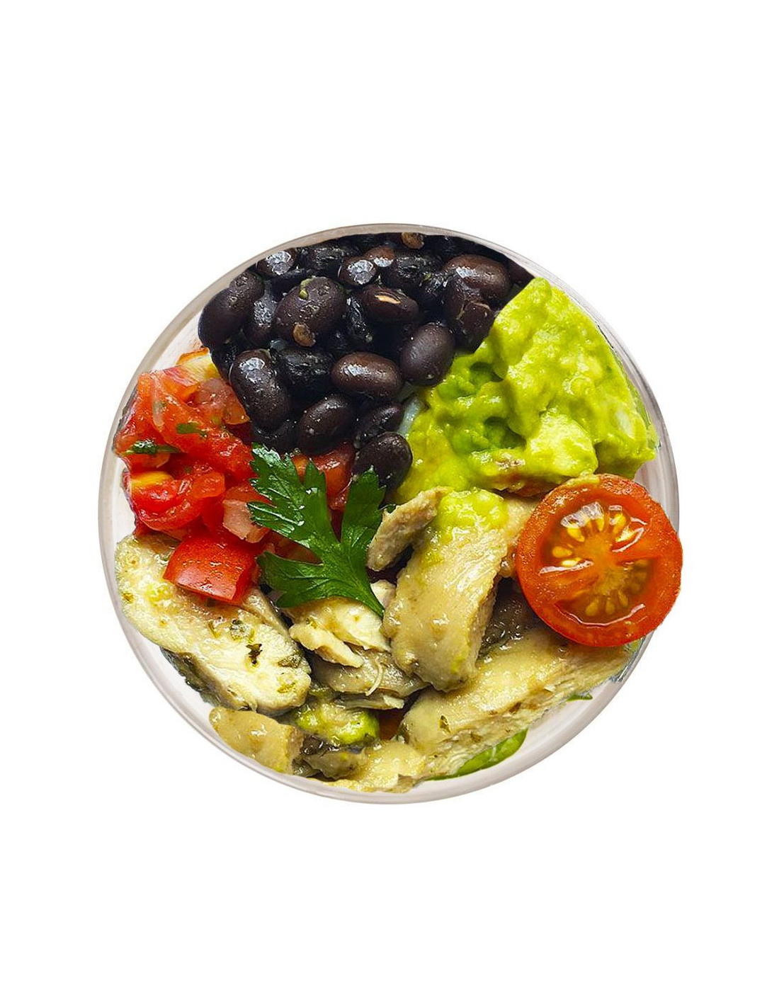 Ingredients: prawns, wheat, broccoli, dried tomato, basil, corn, cherry, spinach, salt, olive oil, lemon juice, lime juice, honey.