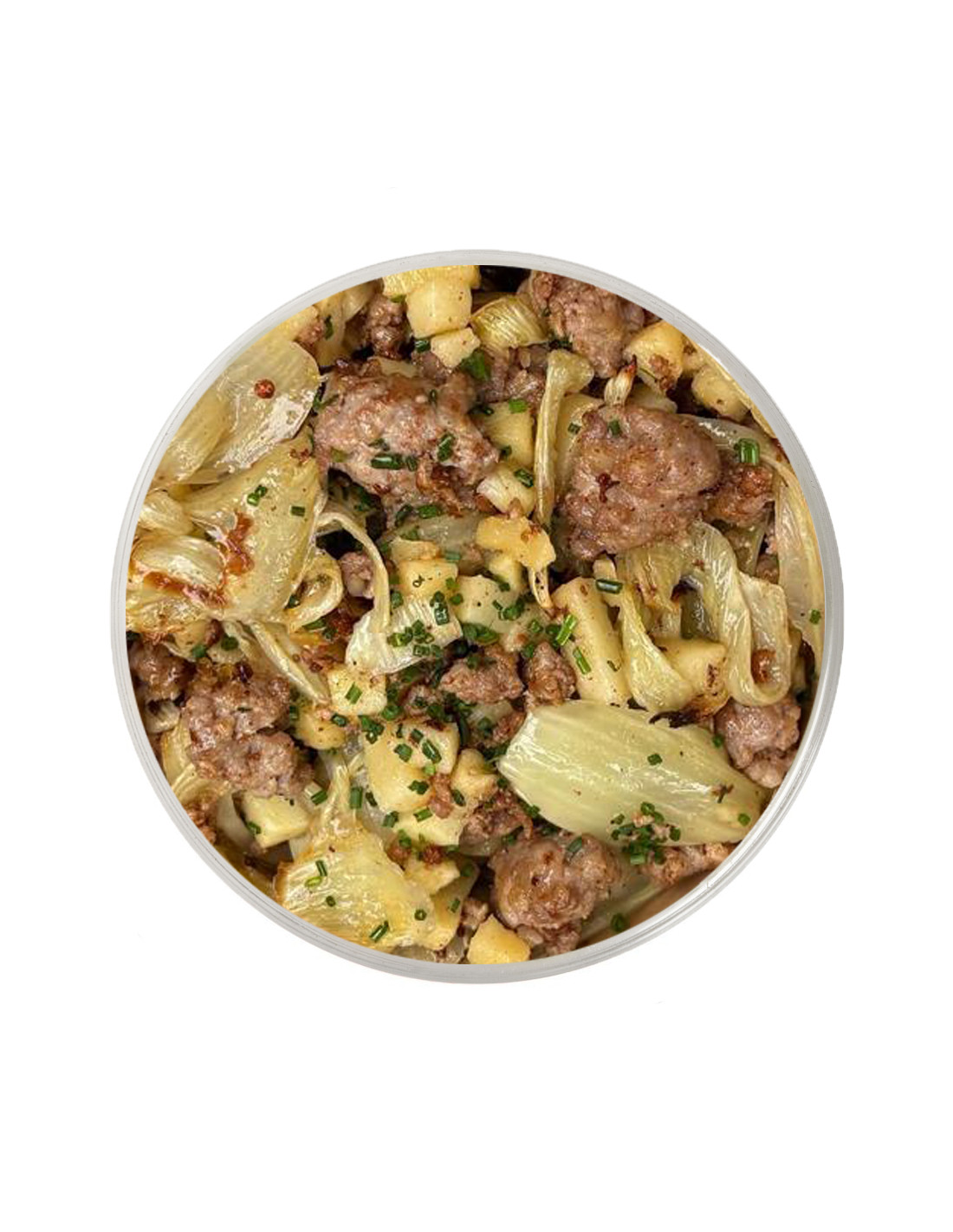 Butifarra desmigada con manzana e hinojo asado.