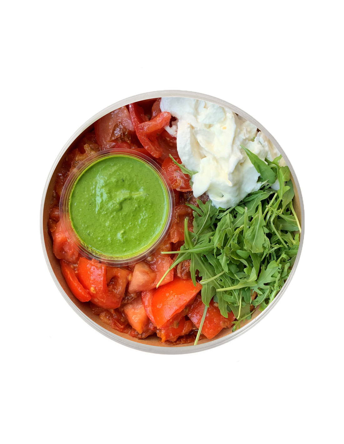 La ensalada caprese es una ensalada italiana compuesta por rodajas de tomate y mozzarella fresca. Es un plato fresco y básico. Le daremos un toque con pesto, tomate y tomate seco.